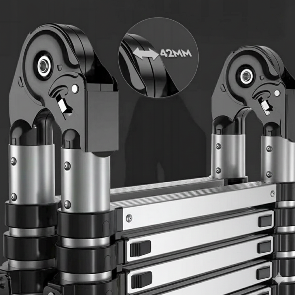 Mai Multă Eficiență: Funcția 2-în-1 permite utilizarea atât ca scară dublă (tip A), cât și ca scară extinsă de 6.6m, adaptându-se oricărei nevoi.